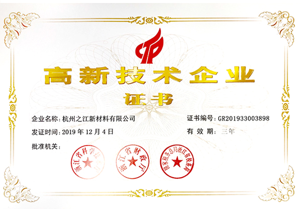 - 112020-2023 高新技術企業證書(之江有機硅)122019-2022 高新技術企業證書(新材料公司)